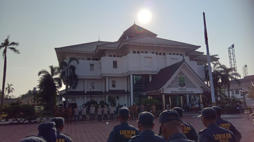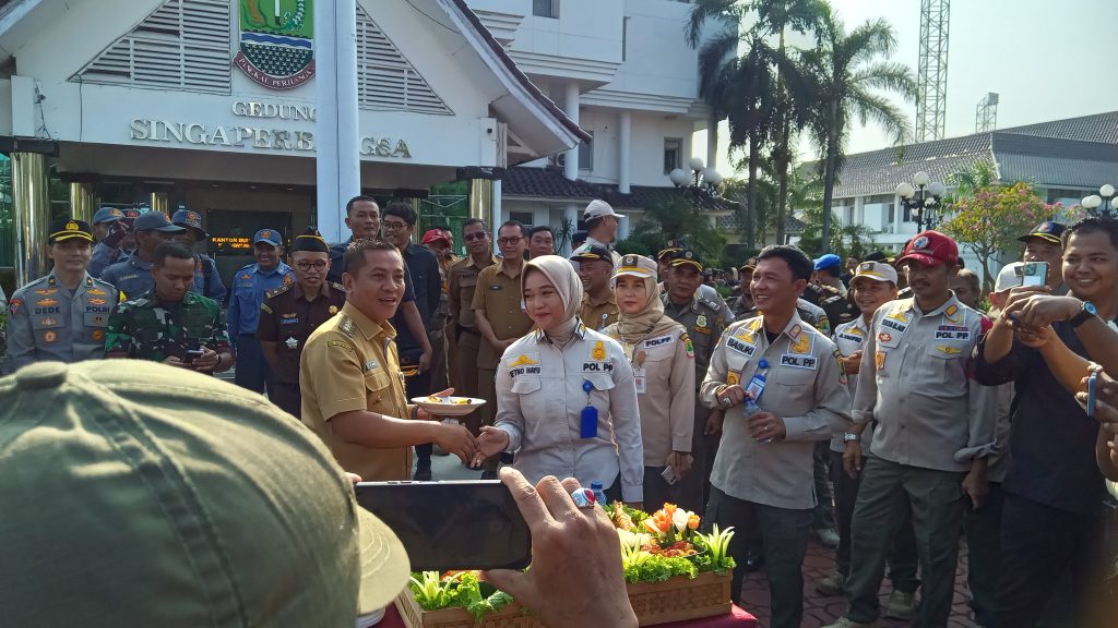 Memperingati HUT Ke 74 Satpol PP, yakni Telah Genap Berusia yang sudah ke sekian tahun,Dengan Tema” peran satpol pp dan satinmas dalam menciptakan transtibumlinmas mendukung pemilu & pilkada 2024″, tamu undangan yang hadir Dandim Letkol If dede hermawan 0604 karawang, Perwakilan Polres karawang, kejari karawang, ketua bawaslu karawang, Ketua KPU Mari Fitriana, dan beberapa perwakilan camat yakni, Kec.ciampel, kecamatan Batu jaya, dan nampak hadir juga Asda 1 pemkab,Bupati aep syaepuloh.”Senin pagi