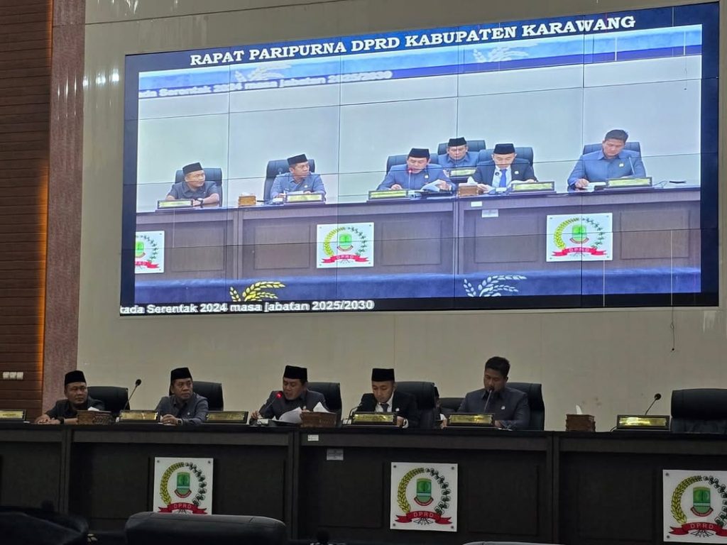 Dewan Perwakilan Rakyat Daerah (DPRD) Kabupaten Karawang melaksanakan Rapat Paripurna yakni mendengarkan Pidato Pertama Bupati terpilih hasil Pemilihan Kepala Daerah (Pilkada) tahun 2024 masa jabatan tahun 2025-2030, bertempat di gedung sidang, Selasa (4/3/2025).
