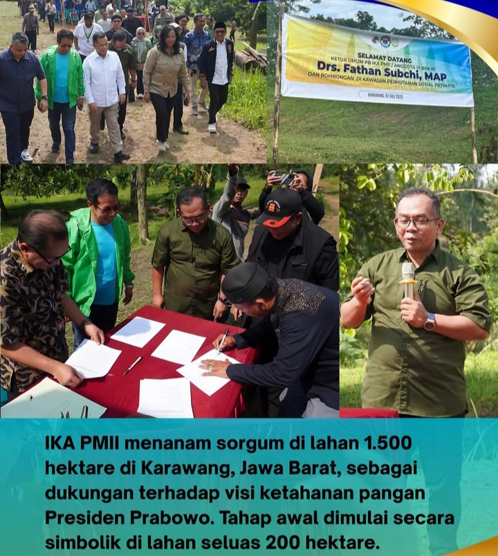 Langkah nyata memperkuat ketahanan pangan nasional kini digelorakan dari jantung Jawa Barat. Pengurus Besar Ikatan Alumni Pergerakan Mahasiswa Islam Indonesia (PB IKAPMII) resmi menjalin kerja sama strategis dengan Perkumpulan Kelompok Tani Hutan Mandiri Teluk Jambe Bersatu (PKTHMTB) melalui penandatanganan nota kesepakatan (MoU), Senin, 7 Juli 2025.